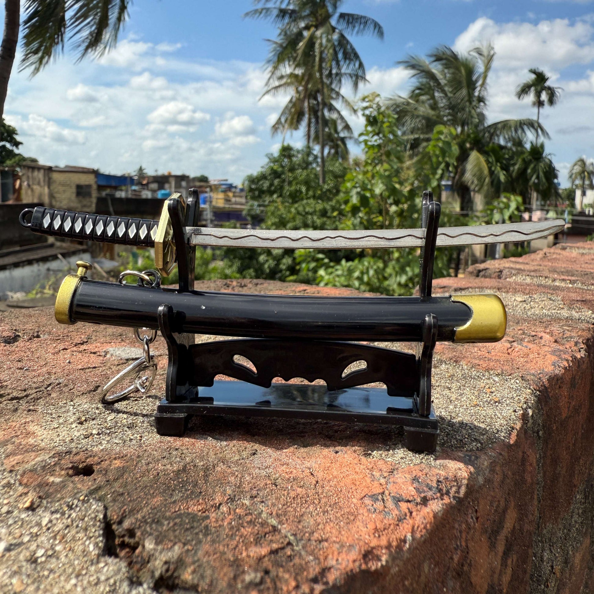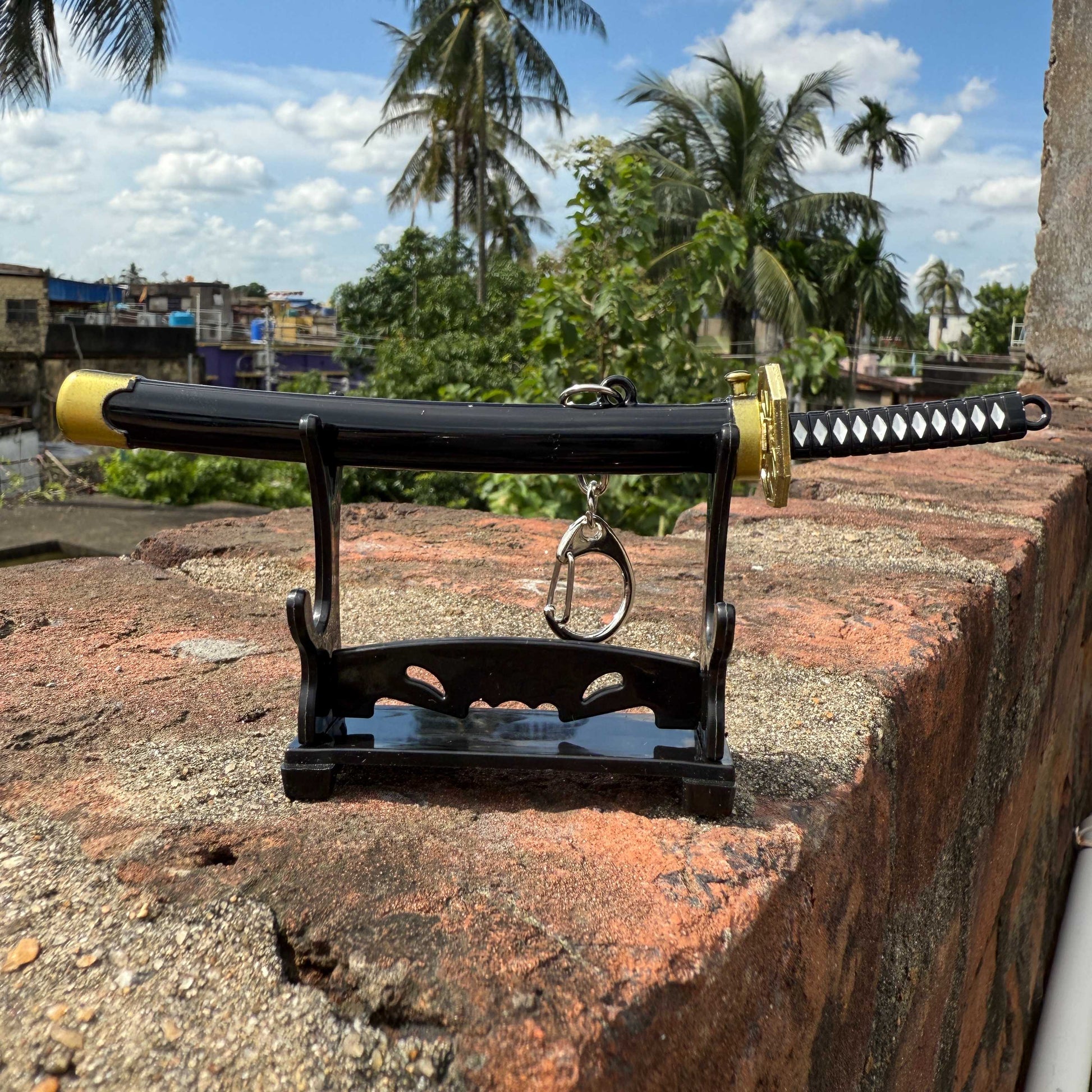 Button Lock Black Metal Katana Keychains [16 CM] Keyring Model 1 || KATANA KEYCHAIN