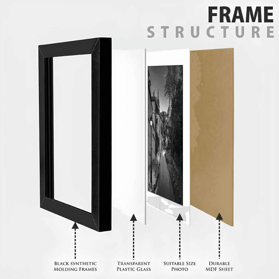 Frame- Elegant black Polywood Frame, Decent black frames: Simple, classic black 11.7x8.3 picture frame, pack of
