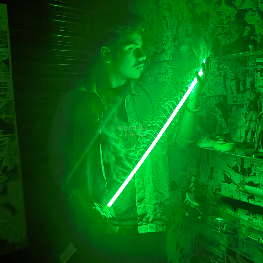 - 7-Color RGB LED Blade: Effortlessly switch between vibrant colors, including a signature fierce green glow, with simple tap-control or button operation.